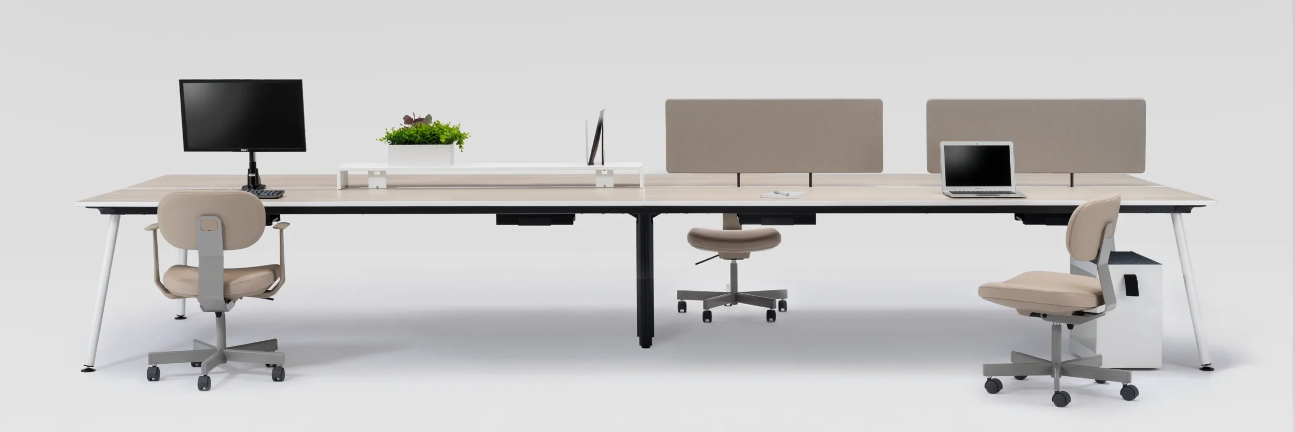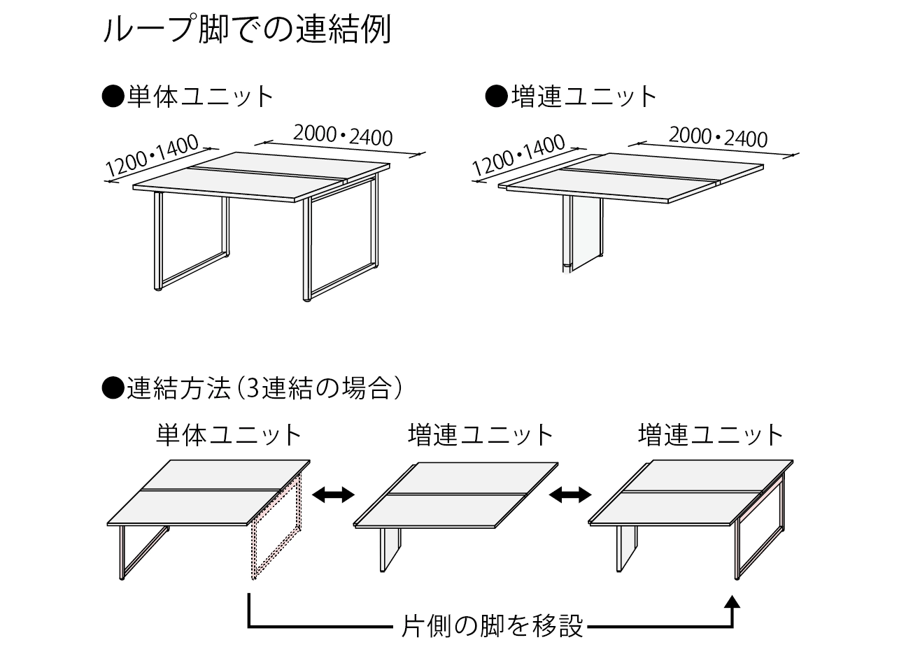 SUSTINOユニットデスクは、単体ユニットと増連ユニットの連結で、