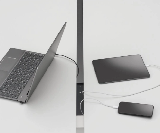 机上をゆったりを使え、面倒な配線処理が必要ない投げ込み式を採用して