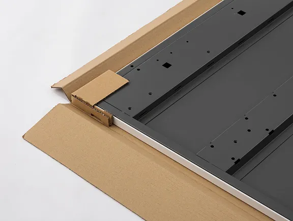天板を梱包する際に使用する角あてを、従来使用していた樹脂から紙に変更し環境に配慮しています。