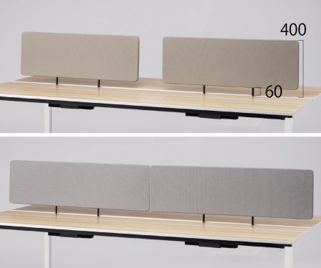 デスクパネルは、シーンに合わせてサイズを選べます。狭いタイプはコミュニケーション重視、広いタイプは集中をサポートします。