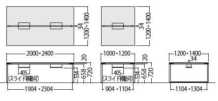 W2000~4800の両面用フリーアドレスデスクを設置できます。